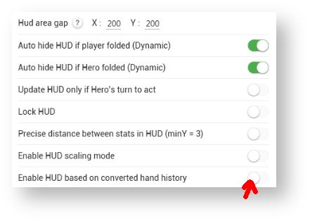 In this case, you need to enable HUD based on converter hand history in Configurator --> HUD: