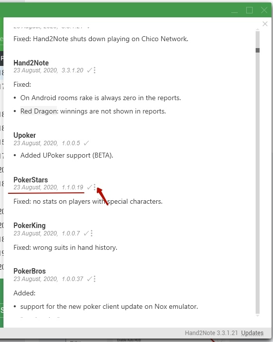 then click Updates on the bottom-right corner, click 3 dots next to PokerStars to 1.1.019 and choose Rollback: