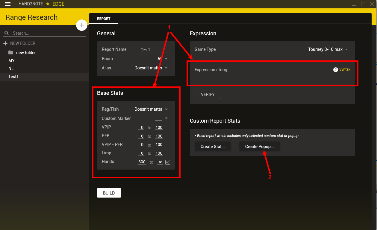 You can create a simple Popup(2) for your report and build the report with the help of the specified criteria and expression (1) instead of all players: