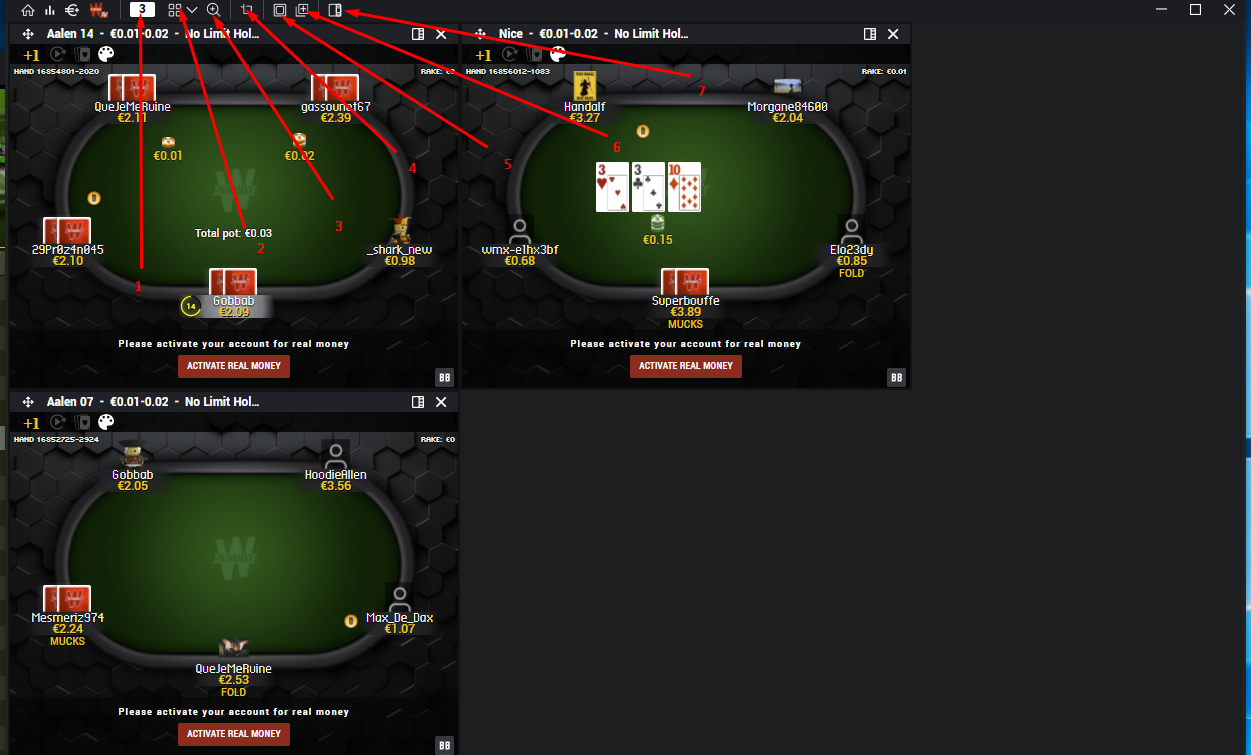 All games/tables which you are going to play have to be opened inside that playground. So if you will need 6 tables during you sessions please , set 6-8 tables in the settings of your Winamax playground. In case if you have set 6 tables and will open 7 tables, on the 7th table there will be no HUD.